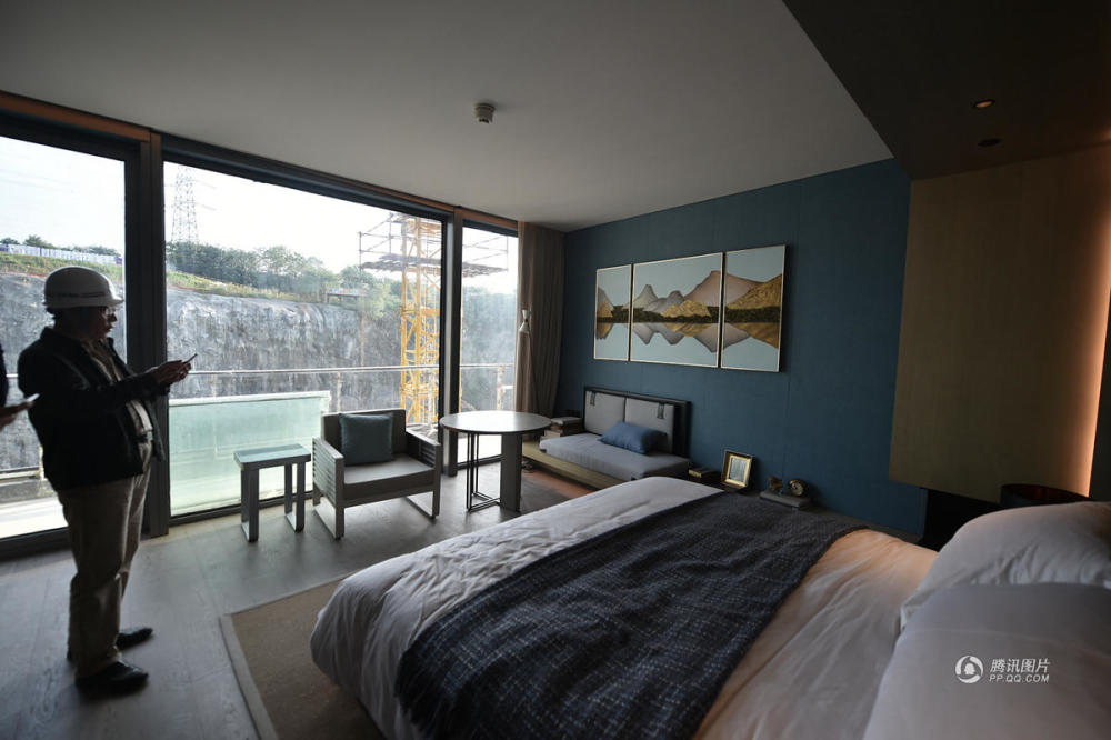 這座投資6億元建造的酒店,位于一座深達80米的廢棄大坑內(nèi),這里曾經(jīng)是一座舊礦場。地平面上2層,地平面以下16層,其中2層還深至水下,深坑酒店目前已經(jīng)進入最后施工階段。