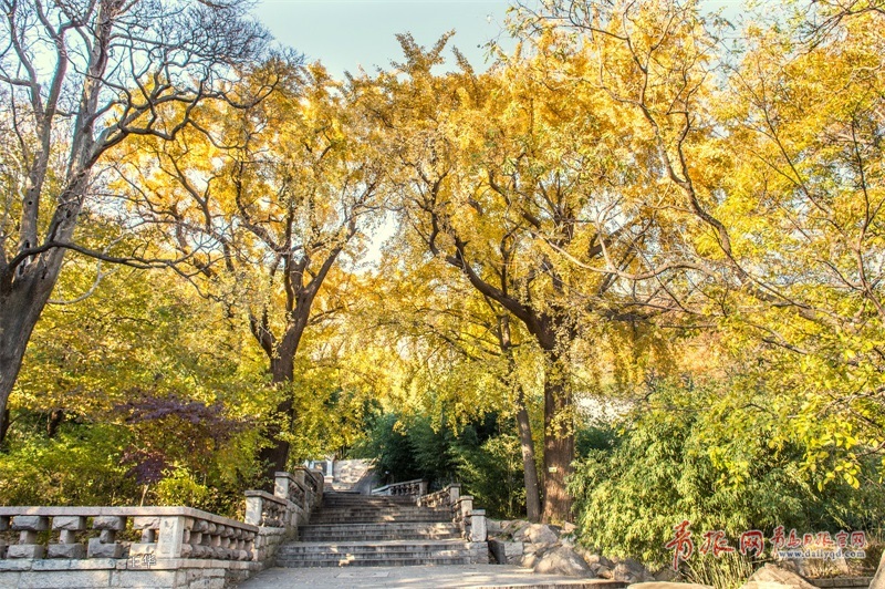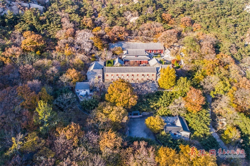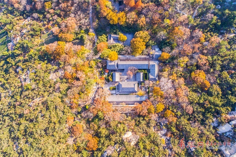 初冬時(shí)節(jié),嶗山層林盡染,落葉繽紛。黃的銀杏、綠的松針和紅的楓葉……游走在華嚴(yán)寺,仿若置身畫卷。