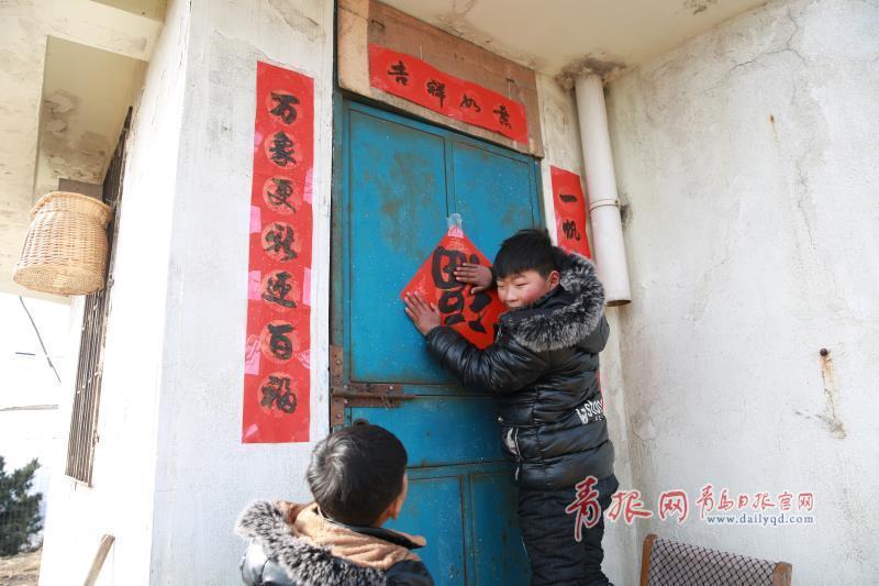 ????去年過(guò)年記者來(lái)拜訪老薛時(shí),老伴專門從老家趕來(lái)為薛海川煮了一鍋年夜餃子。今年,老伴將兩個(gè)孫子薛涵宇、薛涵博一起帶來(lái)了青島。三十一早,兩個(gè)孩子就按照家鄉(xiāng)的習(xí)俗貼起了春聯(lián)。涵宇一再說(shuō)福字要倒著貼,新的一年福就到了我們家。