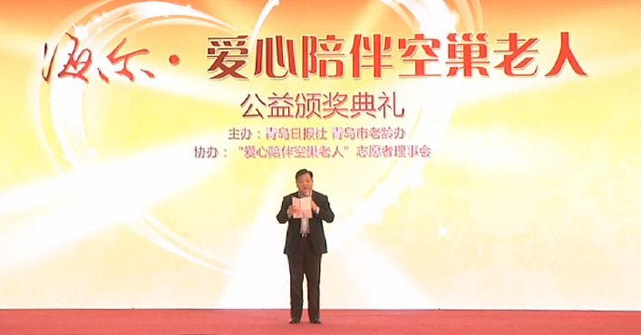 愛心陪伴頒獎典禮領(lǐng)導(dǎo)致辭 青島日報社黨委副書記、總編輯余欽偉,青島市老齡辦主任張寶玲,對“愛心陪伴”一年來的活動給予積極肯定,并對老年朋友送上深深的祝福。